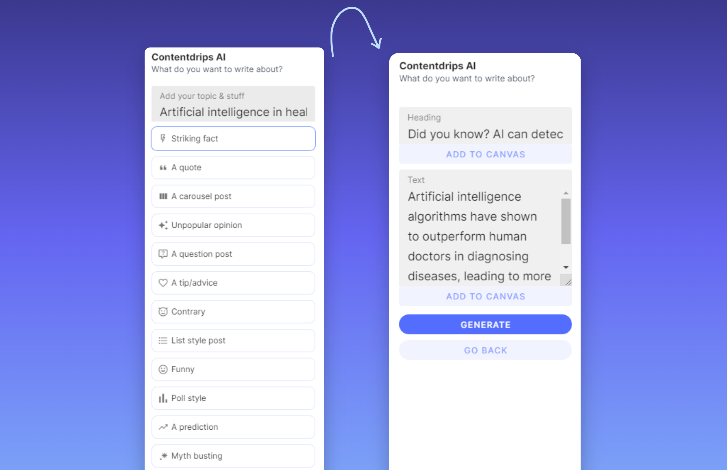 Yes, you read that right. We’ve added AI to Contentdrips. Now you can make your social media posts with the power of AI. From carousels to quotes to poll posts, we’ve got it all. To learn more, keep on reading.