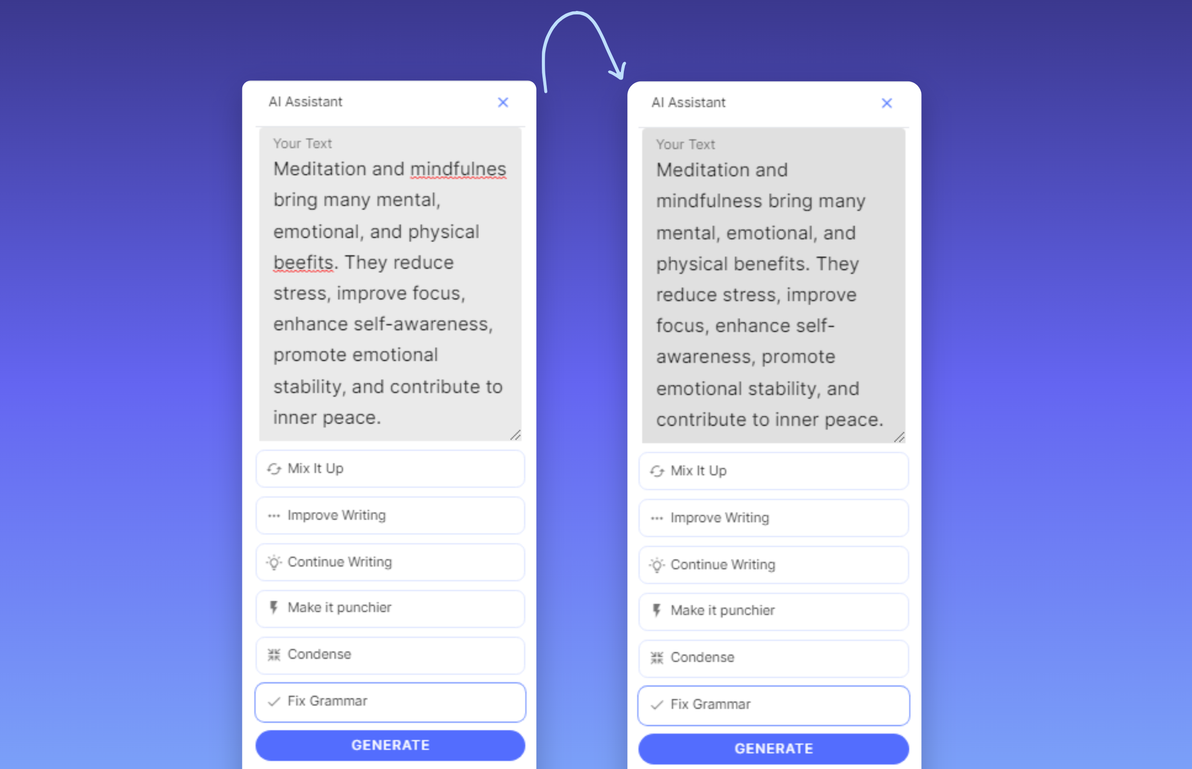 Fix Grammar’ will enhance the clarity and professionalism of your text by automatically identifying and correcting any grammar mistakes that you may have made in your text.