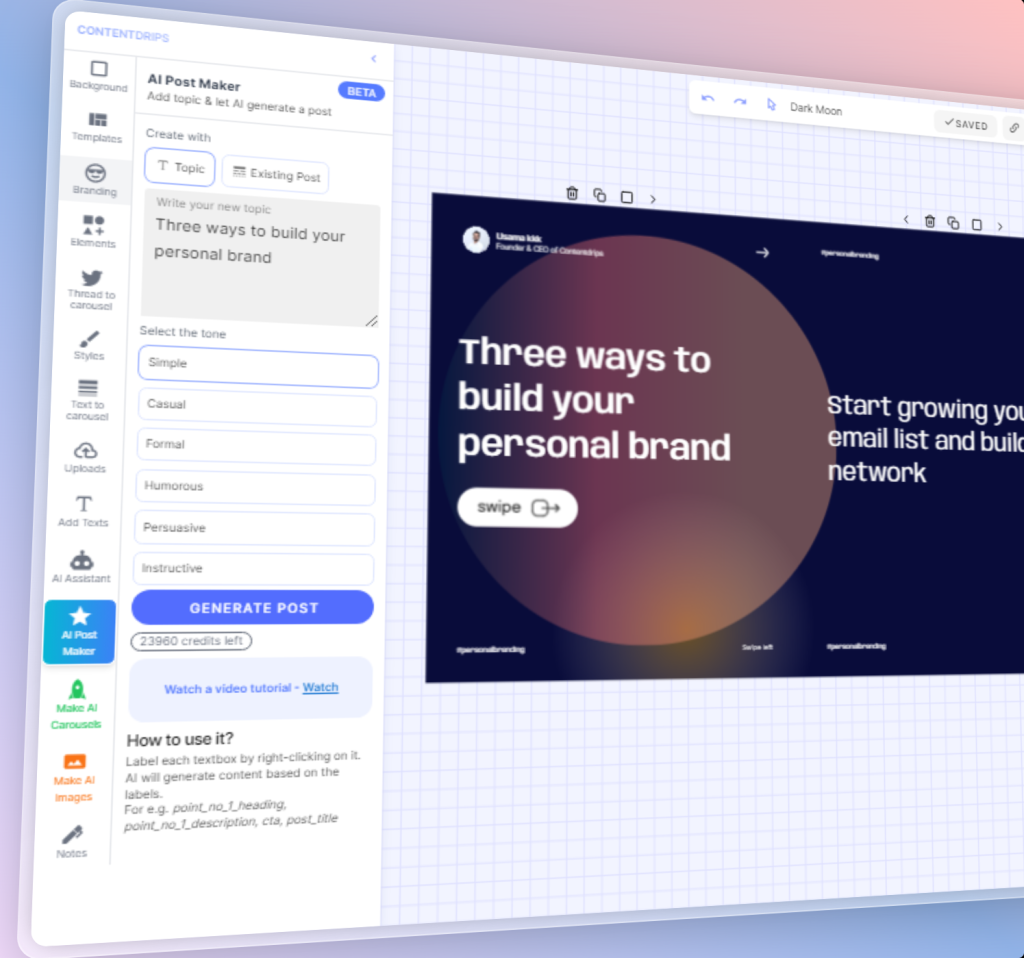 Struggling to turn your blog into an engaging social media post? Use our free Blog to Carousel Converter to quickly convert your blog into a carousel, grab attention, and share it easily.