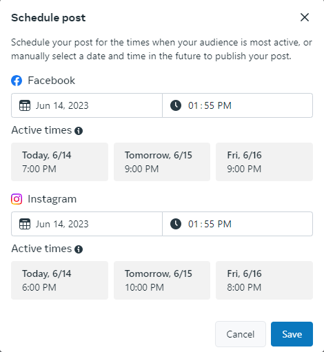 One of the tools You can use to see your Facebook and Instagram audiences active time is Meta business suite.