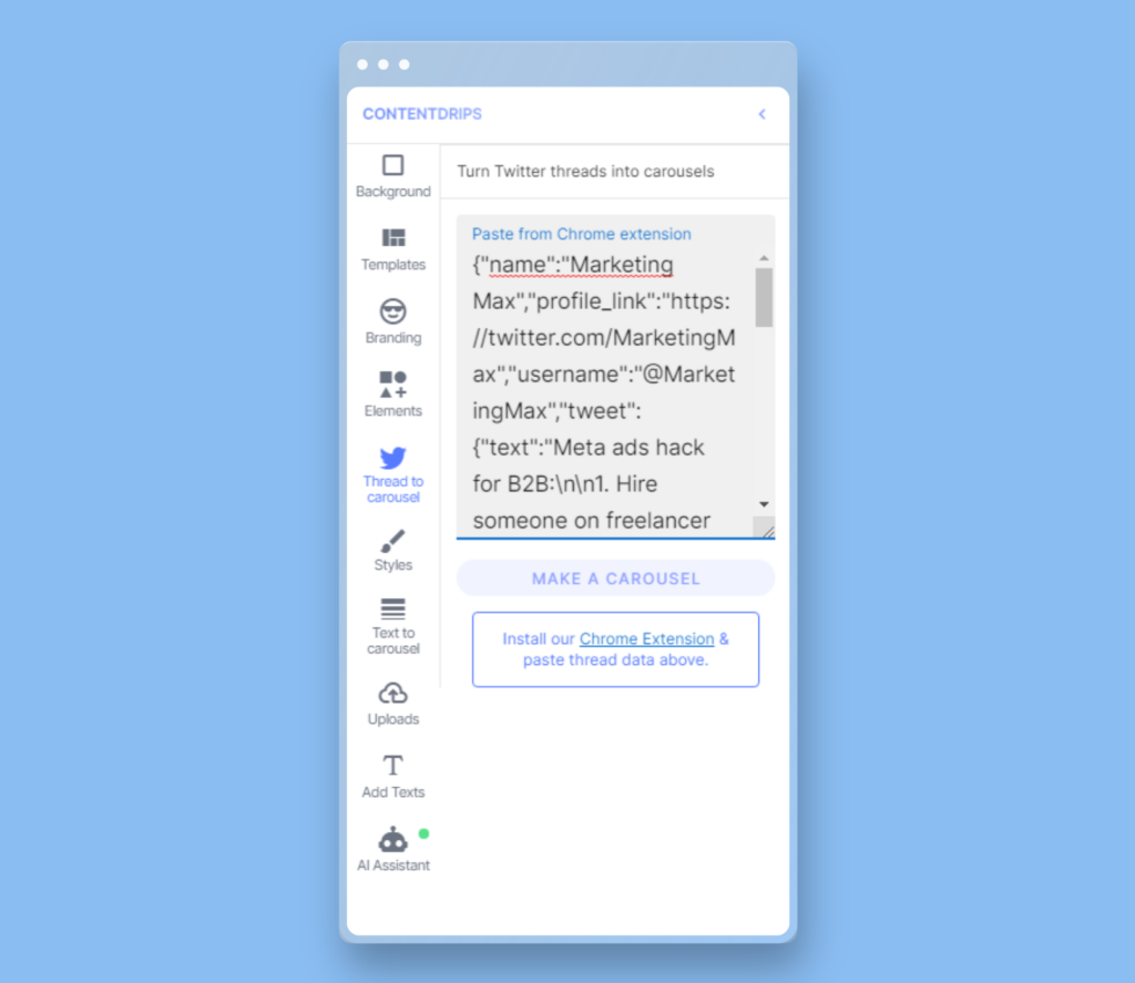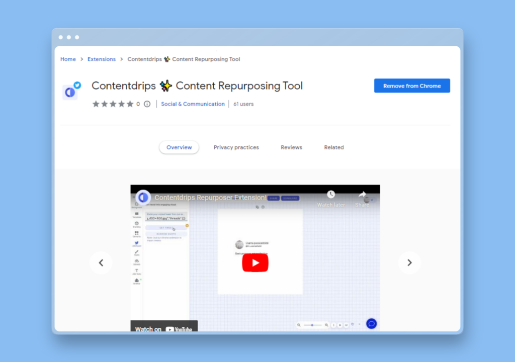 Contentdrips just released a chrome extension to help you repurpose your twitter threads and tweets more easily into social media posts or carousel for your LinkedIn and Instagram. You can even turn your tweets into animated videos and GIFs with Contentdrips.