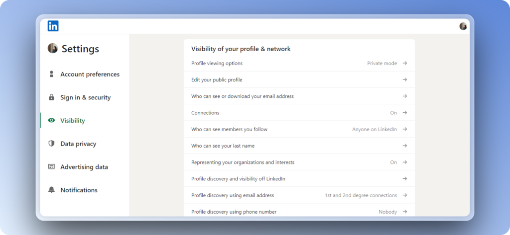 - And, Select what others see when you’ve viewed their profile.