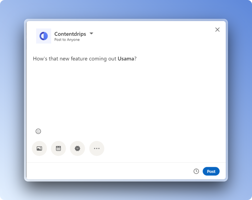 You don’t have to write their whole name when you’re tagging someone in your post. Even just their first name will do. It looks better and gives off a more neutral tone.