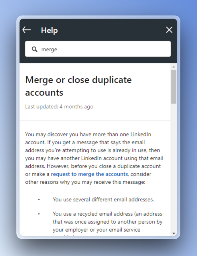 From here you can send a request to merge your accounts.