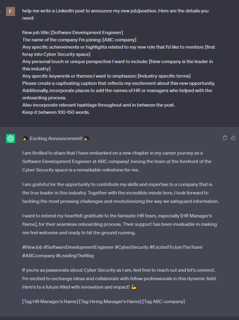 Make Your New Position Announcement Post with ChatGPT + Free Prompt & Ideas for Visuals