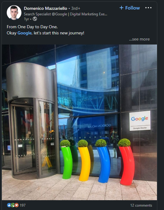 Share the official logo of your new company. This visual helps associate your post with the brand and highlights your affiliation with the organization.