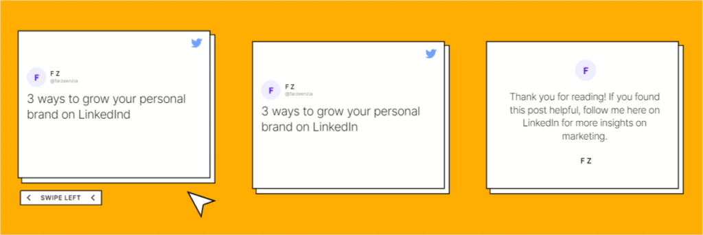 Stick around and we’ll show you 10 visually appealing Twitter thread to LinkedIn carousel templates.