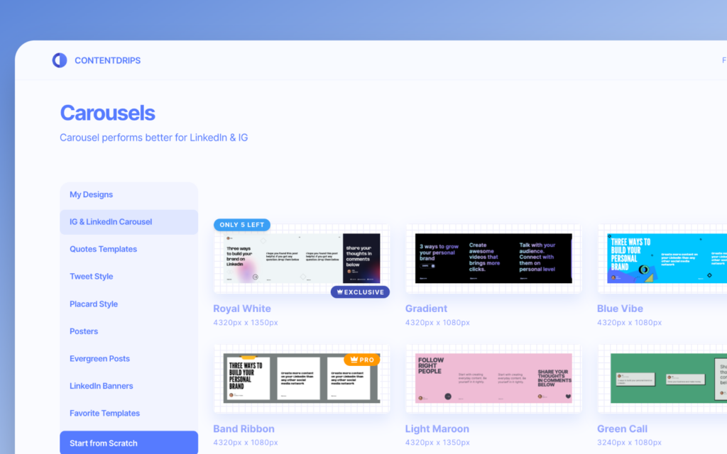 At Contentdrips, we offer a range of social media design templates to help our users create visually appealing content. However, we understand the importance of originality, and to encourage this, we’ve introduced a new feature called Exclusive Templates.