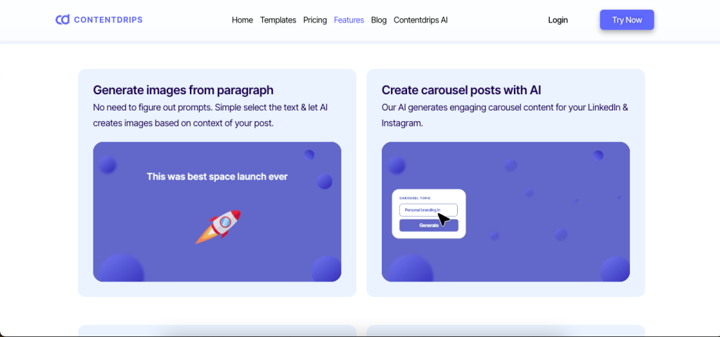 Branding Features: Whether it’s integrating your personal logo or maintaining a cohesive color scheme, Contentdrips makes it simple to reinforce your visual identity.
