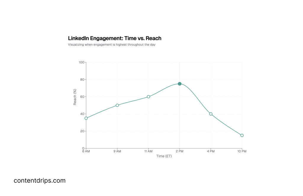 This data shows that mid-morning to early afternoon is the sweet spot for engagement on LinkedIn.