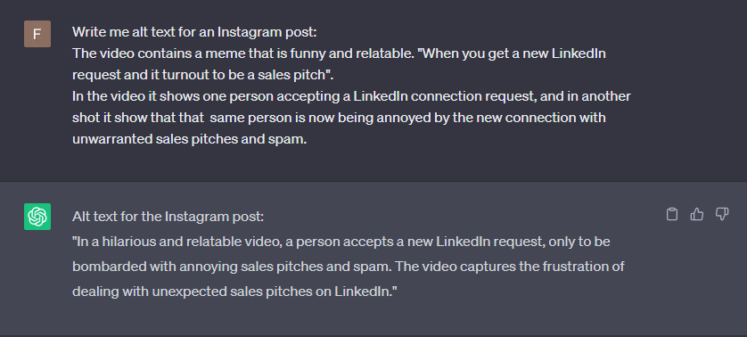 So go ahead, test it out, and make ChatGPT your personal caption and alt text generator for Instagram.