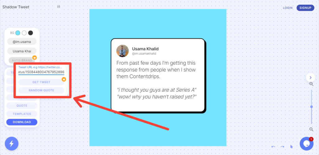 Once you have a tweet in mind, copy its URL and paste it into the Quote Editor box.