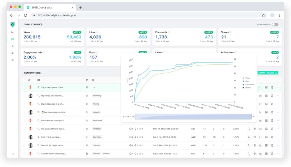 Used by several LinkedIn influencers, Shield Analytics is an excellent tool to monitor your LinkedIn success rate. The tool gives a graphical representation of your audience demographics. You can use this data to enhance and optimize your posts, so they perform even better.