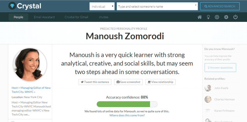 Crystal is a tool you should use if you wish to personally connect with your audience. The tool helps discover the personality of your connect.