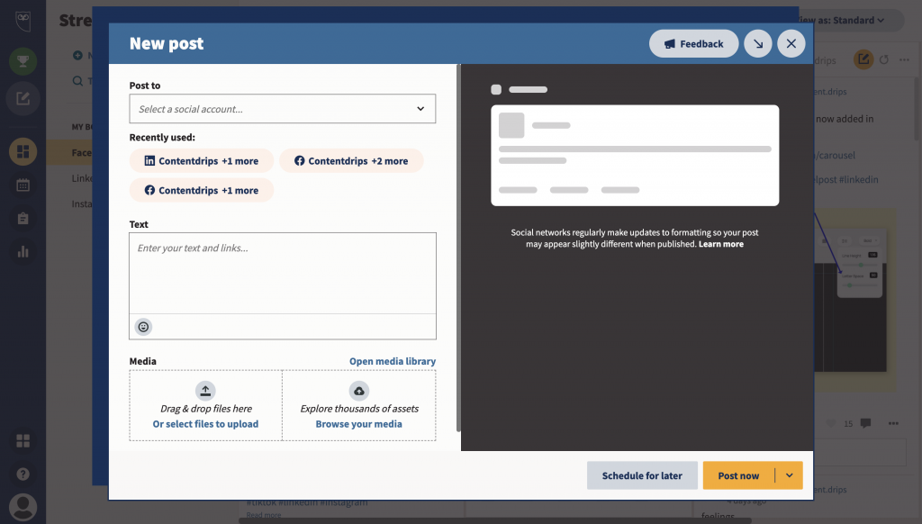 With this application, you can easily manage all your social media and get the desired results. It allows your schedule and post on every platform and comes with a free plan as well.