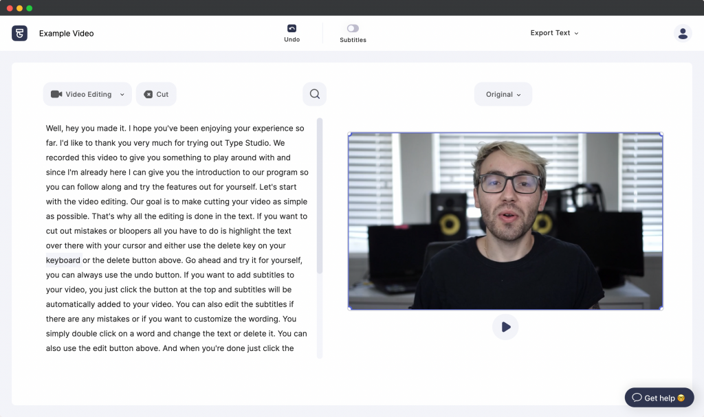 This application is an online web-based tool which allows you to edit your videos like editing a word document.
