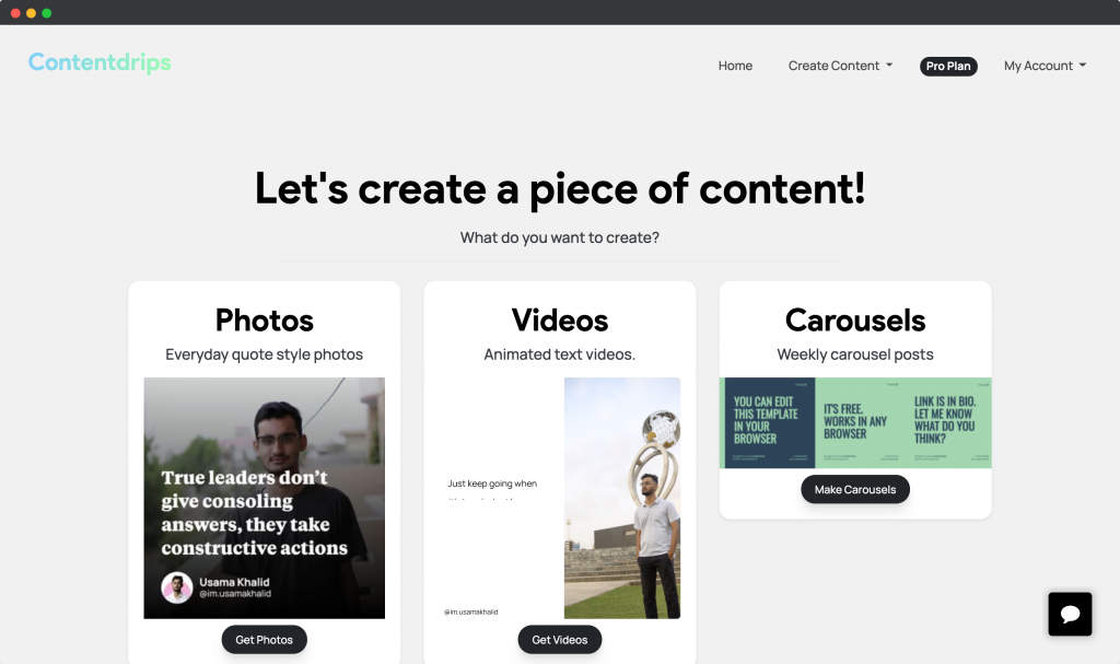 This is the simplest solution for generating daily content for your personal brand. This applications allows you to create seamless carousels, bite-sized videos and photos effortlessly.