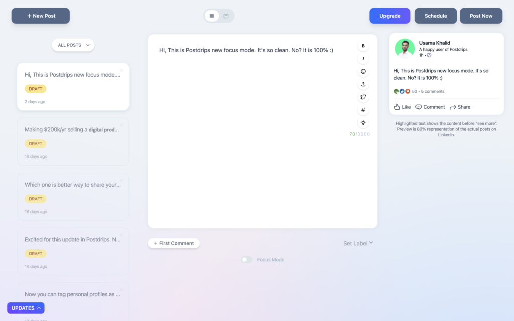 Both tools are great for scheduling social media content but if you’re looking for a LinkedIn specific scheduling tool which is better than any other tool in the market. You should be considering Postdrips because of some the important features like tagging in your posts and post previews.