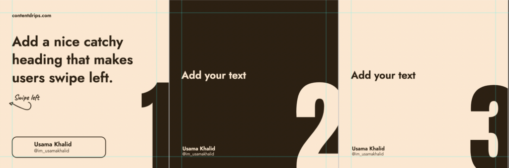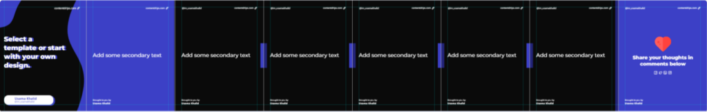 If you’re well-versed and would like to get your hands on some epic carousel designs, browse through. Below I’ve listed five free LinkedIn carousel templates on ContentDrips. As of yet, these designs have brought our users groundbreaking reach.