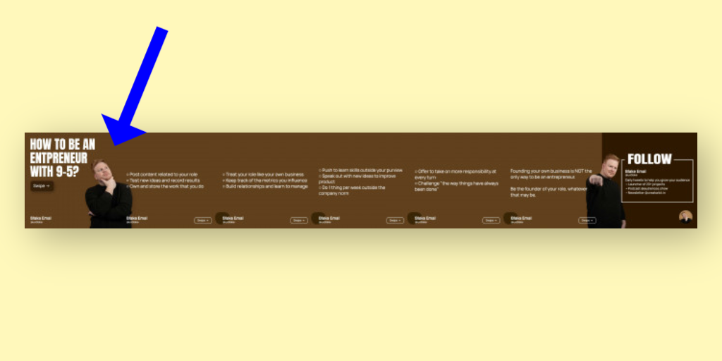 It’s pretty simple: step out in the front. Use your picture in the very first slide of the carousel post, so your audience knows that it’s you who says so. Trust me; it scales up their trust and appreciation of the post substantially.