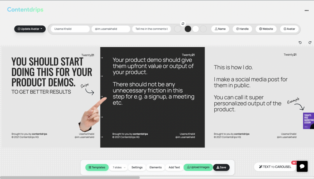 With that said, let’s wrap it up. All five essential elements are now in your knowledge, and Contentdrips is always at your service, bringing trailblazing carousel templates within your reach. I truly hope you make the best of both.