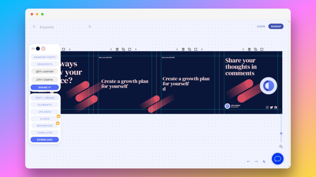 Use our Carousel maker to turn your blogs into carousel posts for your LinkedIn and Instagram audience. Carousel posts allow you to share multiple images or videos in a single post, which can be useful for showcasing different aspects of their content.