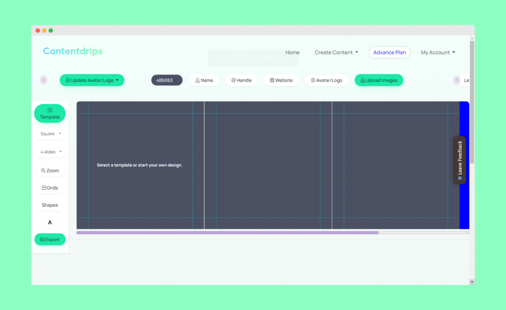 - Go to https://contentdrips.com/carousel where you then can see your working area.