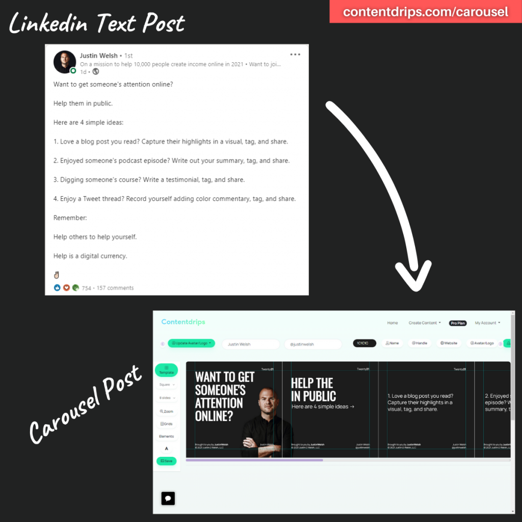 “You should be turning your LinkedIn text posts into carousel posts.”