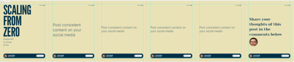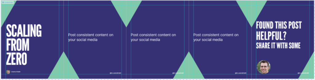 Scaling from Zero is a high-perfoming LinkedIn carousel template for educational content. The abundant space on each slide gives you enough room for elements and text.