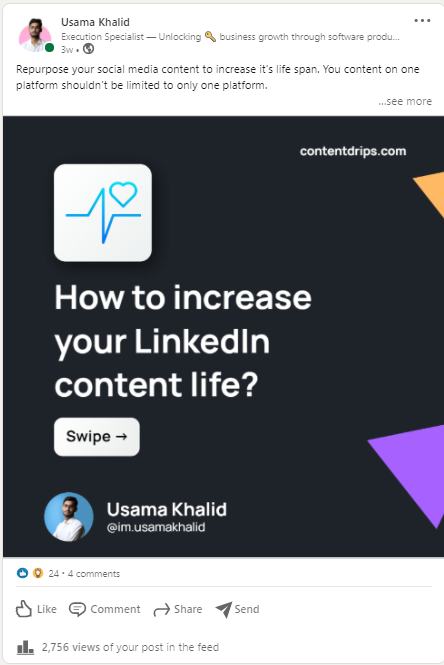 So if you do a blogpost for your startup, business or even for podcasts. You should turn that blogpost into a carousel post for LinkedIn.