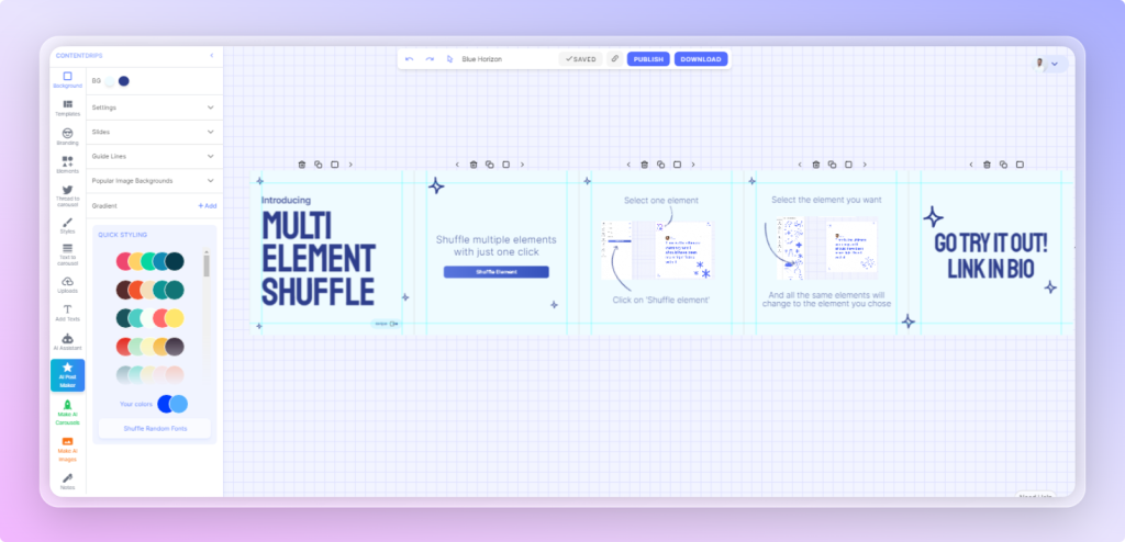 Established only recently, Content Drips is your one-stop solution for carousels of all sorts. Whether you wish to craft a carousel for your Instagram account or your LinkedIn, this all-embracing platform has got it all covered for you