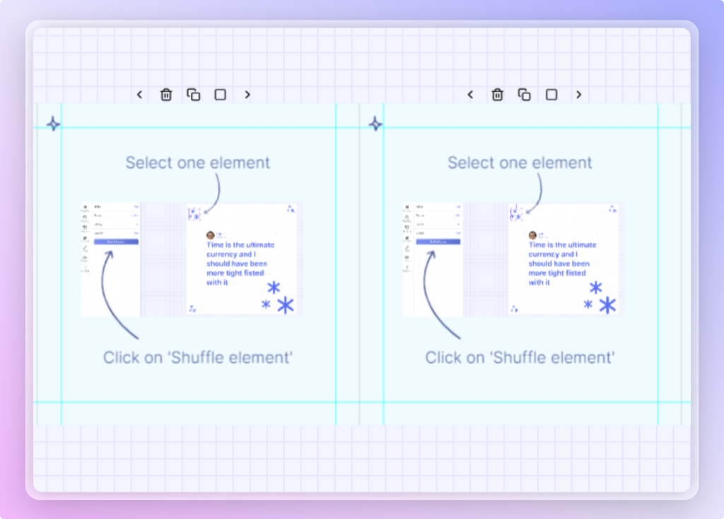 Unlike other unnecessarily ornate apps and tools, Content Drips does not expect you to work on the same stuff over and over again. If you want two exact same elements for two different slides, use Smart Clone to replicate the same element at the same position on the next slide.